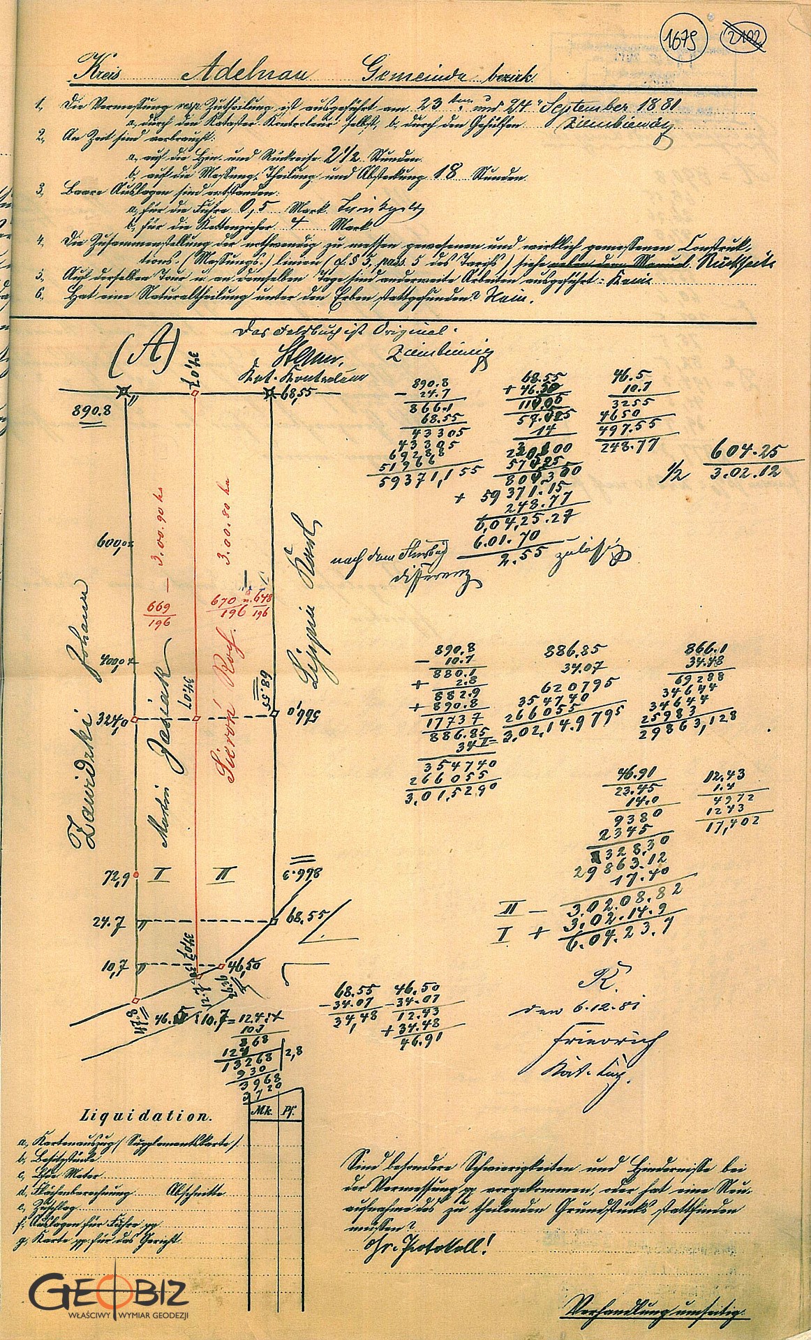 - Opcjonalnie wyniesienie i okazanie granic stronom postępowania podziałowego w terenie.